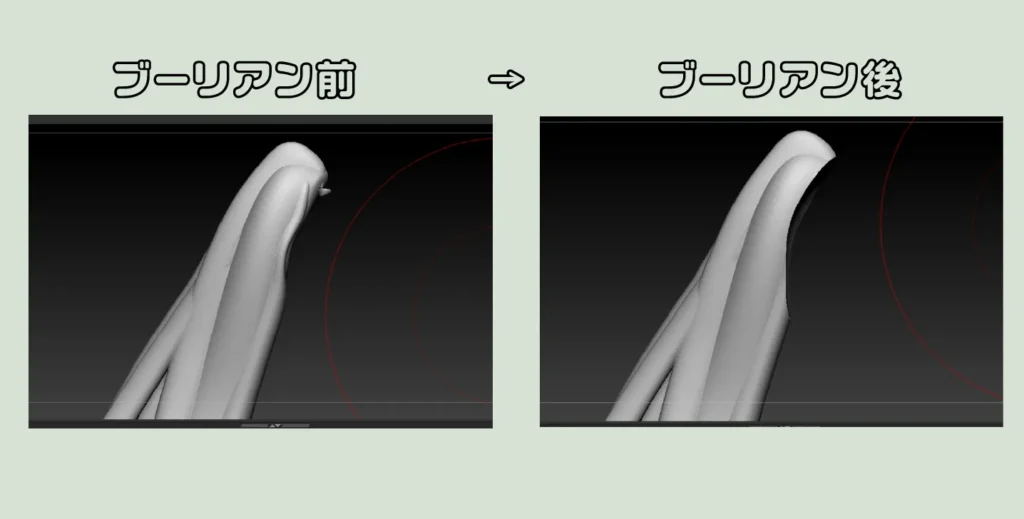 その後、食い込み部分をブーリアンして、反対側のパーツを削りとって完成です。